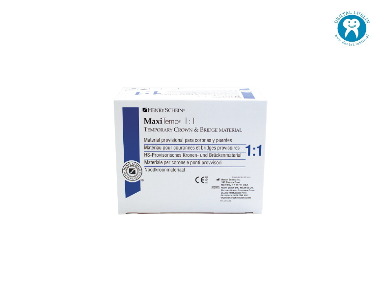HENRYSHEINTymczasowy materiał do koron, mostów, wkładów i nakładów. Jest to fluoryzujący i polimeryzujący na zimno system pasta-pasta aplikowany przy pomocy pistoletu mieszającego w stosunku 1:1/ 2:1. Składa się z bazy i katalizatora. Opakowanie: kartusz 50 ml + 6 końcówek mieszających.