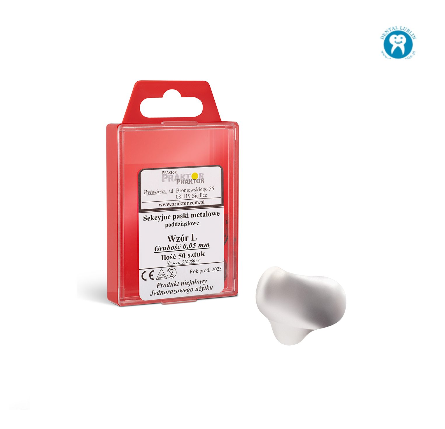 Paski metalowe sekcyjne z wypustką przeznaczone do anatomicznej odbudowy zębów na powierzchni stycznej.