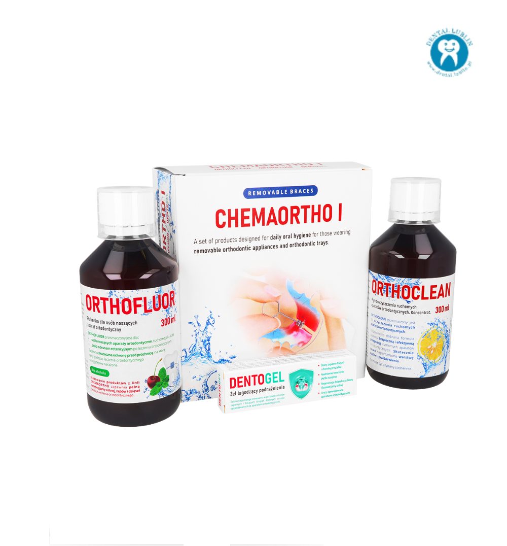 CHEMAZestaw produktów przeznaczonych do codziennej higienynjamy ustnej, dla osób noszących ruchome aparaty ortodontyczne oraz nakładki ortodontyczne.