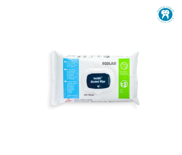 ECOLABGotowe do użycia chusteczki do dezynfekcji wyrobów medycznych odpornych na działanie alkoholu.