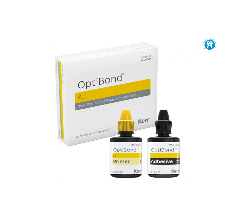 KERR WŁOCHYOptiBond FL Kit to dwubutelkowy oparty na technice całkowitego wytrawiania system wiążący gwarantujący jednoetapową procedurę polimeryzacji. System wiążący OptiBond FL zawiera jako wypełniacz 48% szkła barowego o średnicy cząstek 0,6 mikrona, uwalnia fluor i nie przepuszcza promieniowania rentgenowskiego.